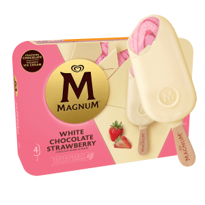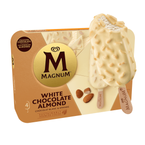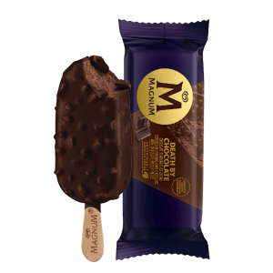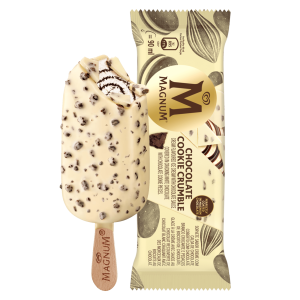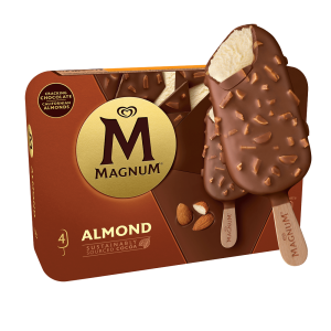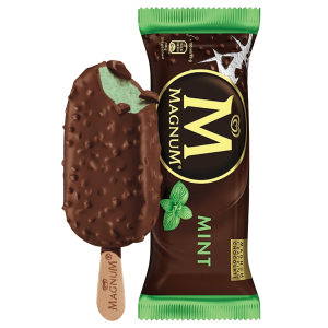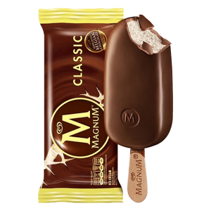 O original Magnum. Gelado de baunilha envolto em espesso chocolate belga rachado.
