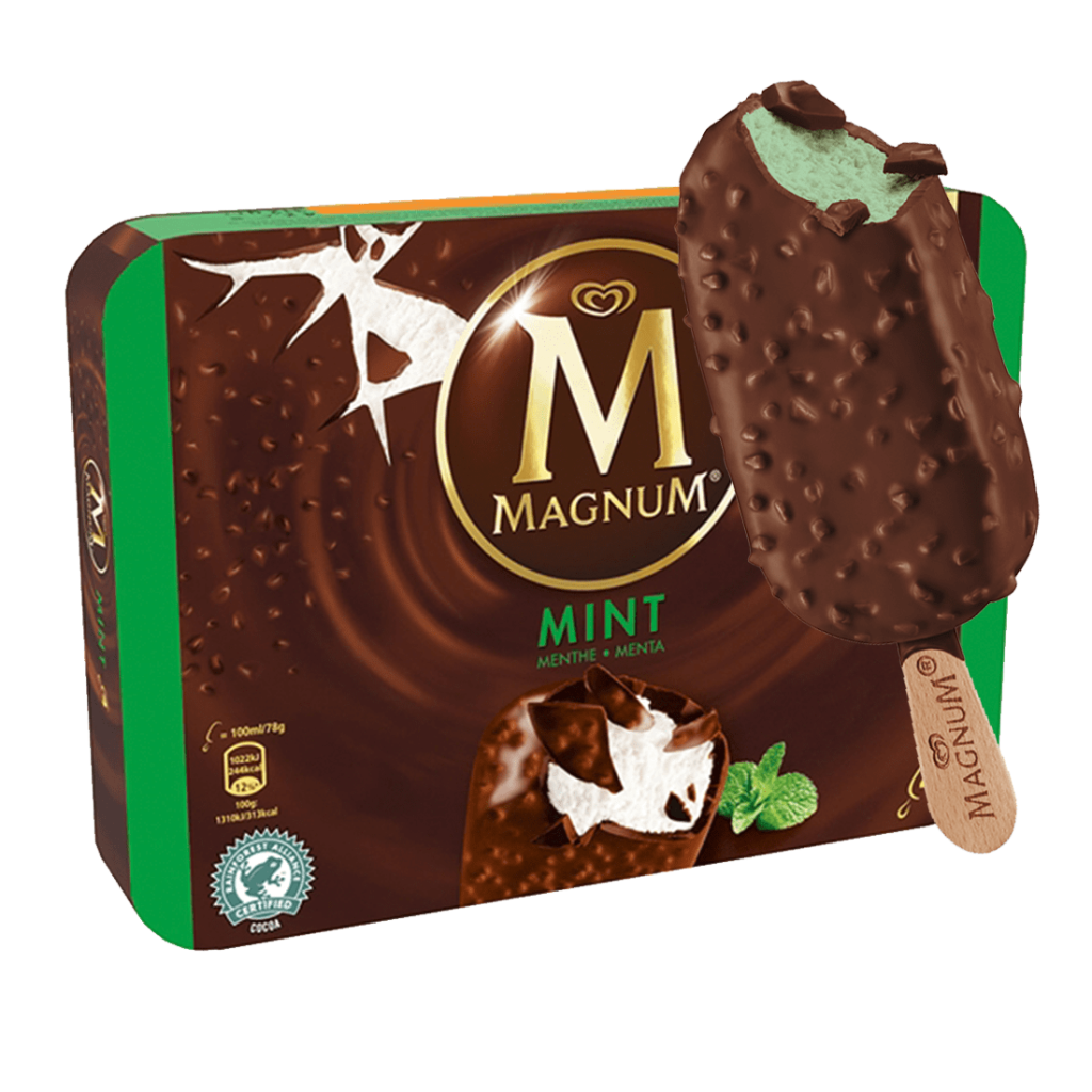 Magnum é um gelado premium que combina um cremoso gelado de baunilha com uma espessa cobertura de chocolate crocante, proporcionando uma experiência intensa e indulgente a cada dentada. Conhecido pela sua textura rica e sabor marcante, Magnum é ideal para quem procura um momento de prazer e sofisticação, transformando um simples gelado numa verdadeira experiência gourmet.